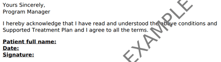 - The salutation, acknowledgment, and patient full name-date-signature element