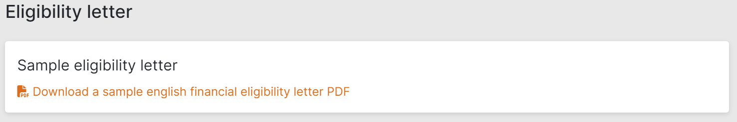 Clicking on "Download a sample English financial eligibility letter PDF" will generate your document based on the information you entered.