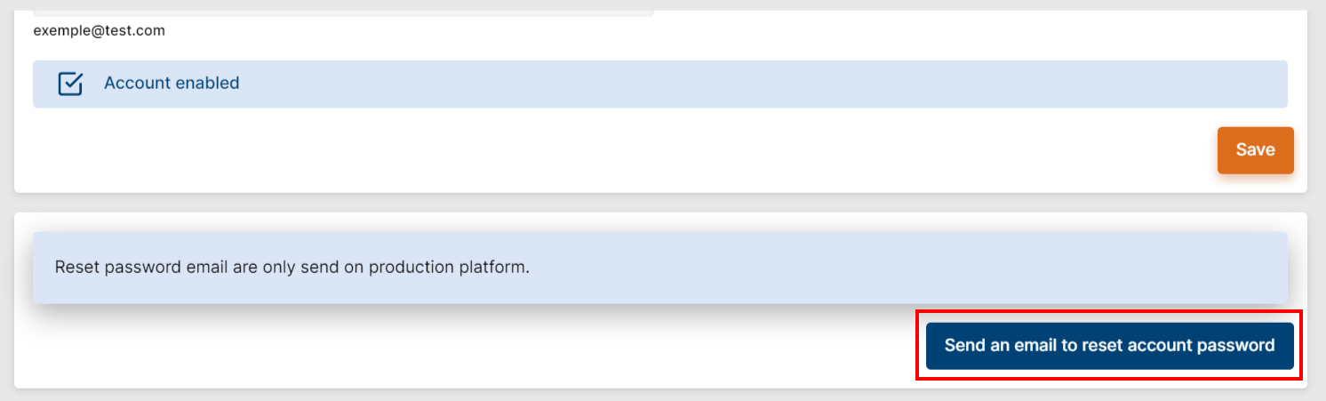 If the red disclaimer “This user does not have…” displays, then the Lab’s account is not enabled, and no email will be sent to set their password.