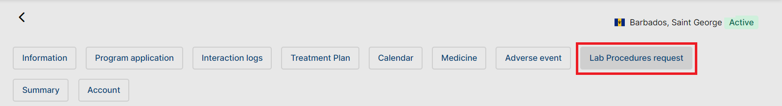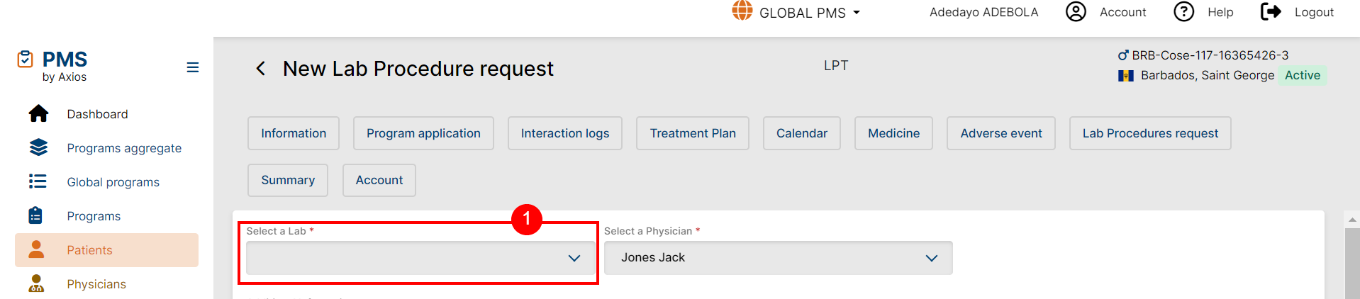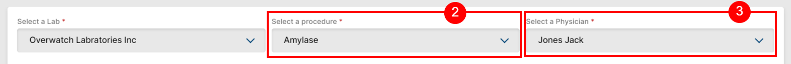 - “Select a procedure” dropdown - Searchable list of enabled "Available Lab Procedures" added for the selected Lab entity via "Add a new Lab procedure".