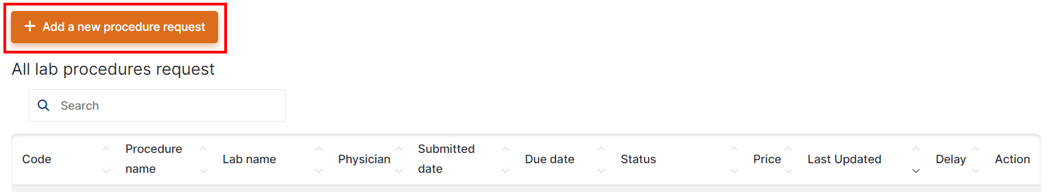 To get started, under the "Lab Procedures Request" tab, click the orange button at the top of the page.