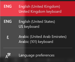 Look at your taskbar right now and you’ll probably see “ENG” depending on your machine’s selected language. Clicking that will open the language options available on your laptop. You should have the English (United Kingdom) option selected as that matches the locale used on PMS.