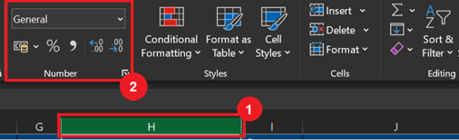 - Find the “Number” submenu under the Home tab and click on the dropdown