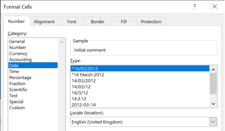 - Alternatively, you can select the “More Number Formats” Option, which will allow you to select specific date configurations as well as the date locale you’d like the dates to be in.