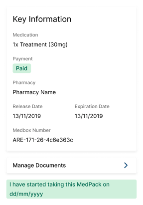 Finally, Patients can self-track their medication intake. Using the “I have started taking this medication”, patients actively participate in their treatment journey by indicating the date at which they start a specific cycle.