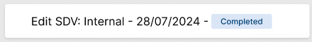 Completed – This status denotes that ALL items in the generated SDV have been checked and the SDV has been marked as “Completed”.