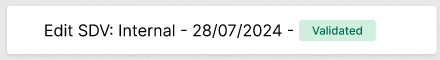 The Program Supervisor will be able to Validate the SDV sample via a “Validate” button in the bottom right of the screen when viewing a “Completed” SDV. Clicking this button will mark the button as Validated, making it view only.